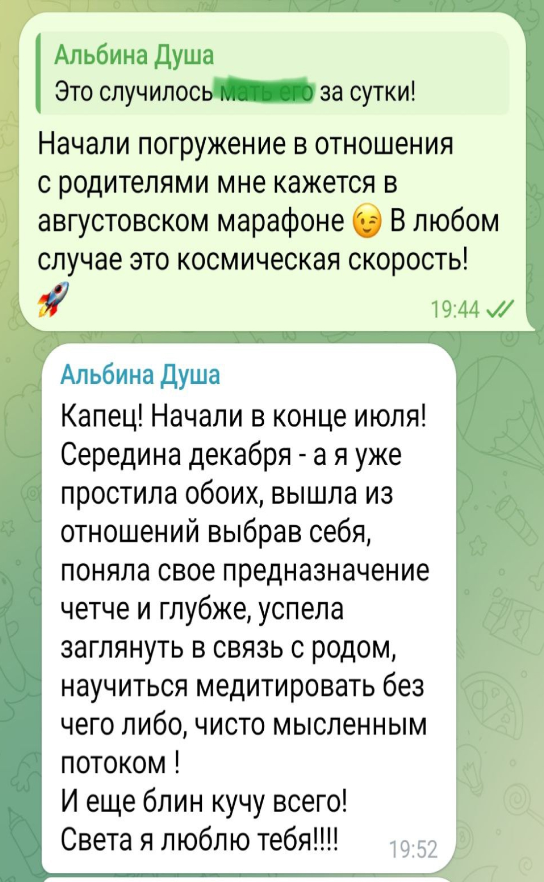 В процессе обучения и после есть чат участников, где мы общаемся и поддерживаем друг друга. Здесь же вы узнаете новости и получаете ответы на вопросы.